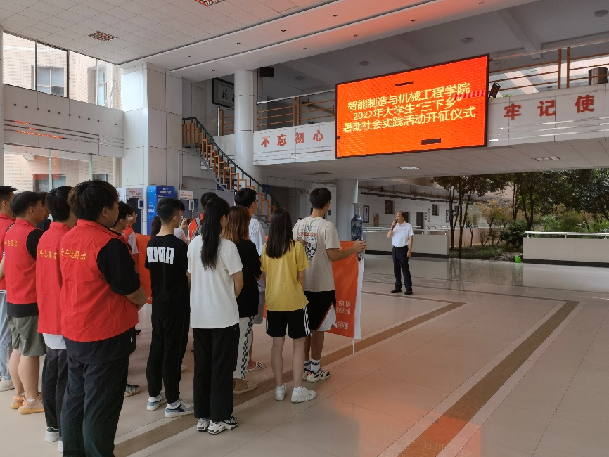 6月17日上午,智能制造与机械工程学院2022“三下乡”暑期社会实践活动开征仪式在机械楼大厅举行。党委书记范志明、党委副书记王本强和团队带队老师出席活动。