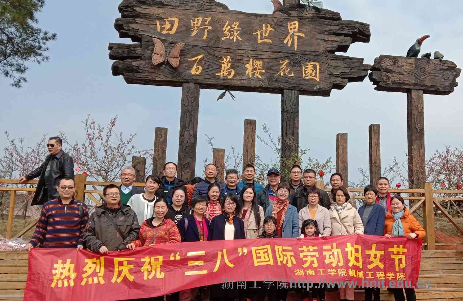 为庆祝第109个“三八”国际劳动妇女节,丰富女性教职工文化生活,310日,机械工程学院分工会到常宁社会主义新农村建设基地——百万樱花种植园举行户外实践活动。联系校领导罗建华向女教职工表达了祝福,并出席了本次活动