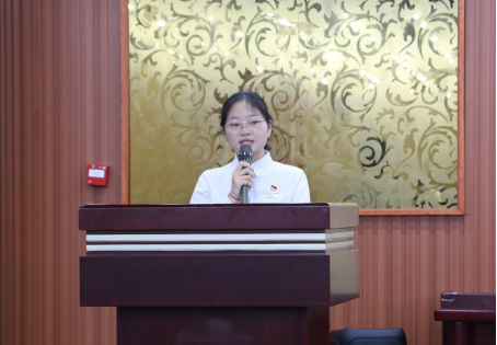 机设1901班韩潇慧代表受表彰学生发言,她回顾自己的大学生活:专业学习、学科竞赛、新生班助、部门负责人、防疫志愿者……发出了“有志者事竟成”的感叹,她表示我们生逢其时,也重担在肩。鼓励大家明确自己的目标,面对困难不放弃,遇到挫折不气馁,终将抵达理想的彼岸。
