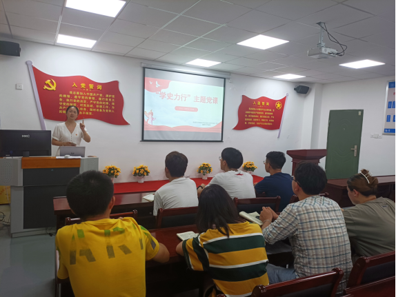 党支部书记张艳霞以“学史力行”为主题讲授党课,她从建党100周年的重要历史节点、党员的身份要求以及开展党史教育的意义三个维度引领支部党员开展党史学习教育,她强调作为党员应该做到学史力行,在践行初心使命上力行,在旗帜鲜明讲政治上力行,在勇于自我革命上力行,在艰苦奋斗、担当作为上力行。同时,支部书记张艳霞还和支部党员们一起分享了2020年1月8日在“不忘初心、牢记使命”主题教育总结大会上的讲话的部分内容。最后支部书记张艳霞引用了习总书记的话来鞭策党员们:“党员、干部要经常重温党章,重温自己的入党誓言,重温革命烈士的家书。党章要放在床头,经常对照检查,看看自己做到了没有?看看自己有没有违背初心的行为?房间要经常打扫,镜子要经常擦拭。”