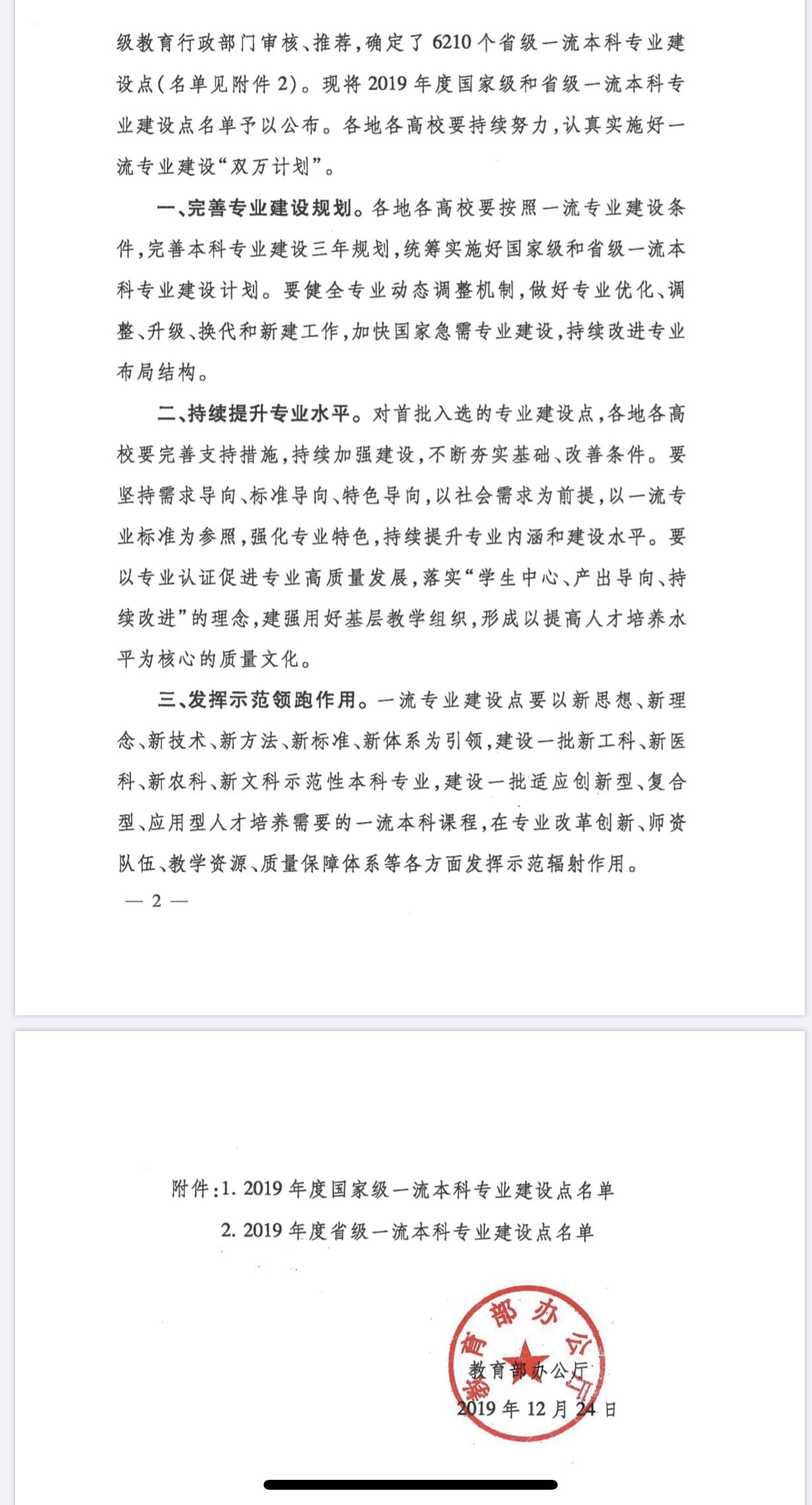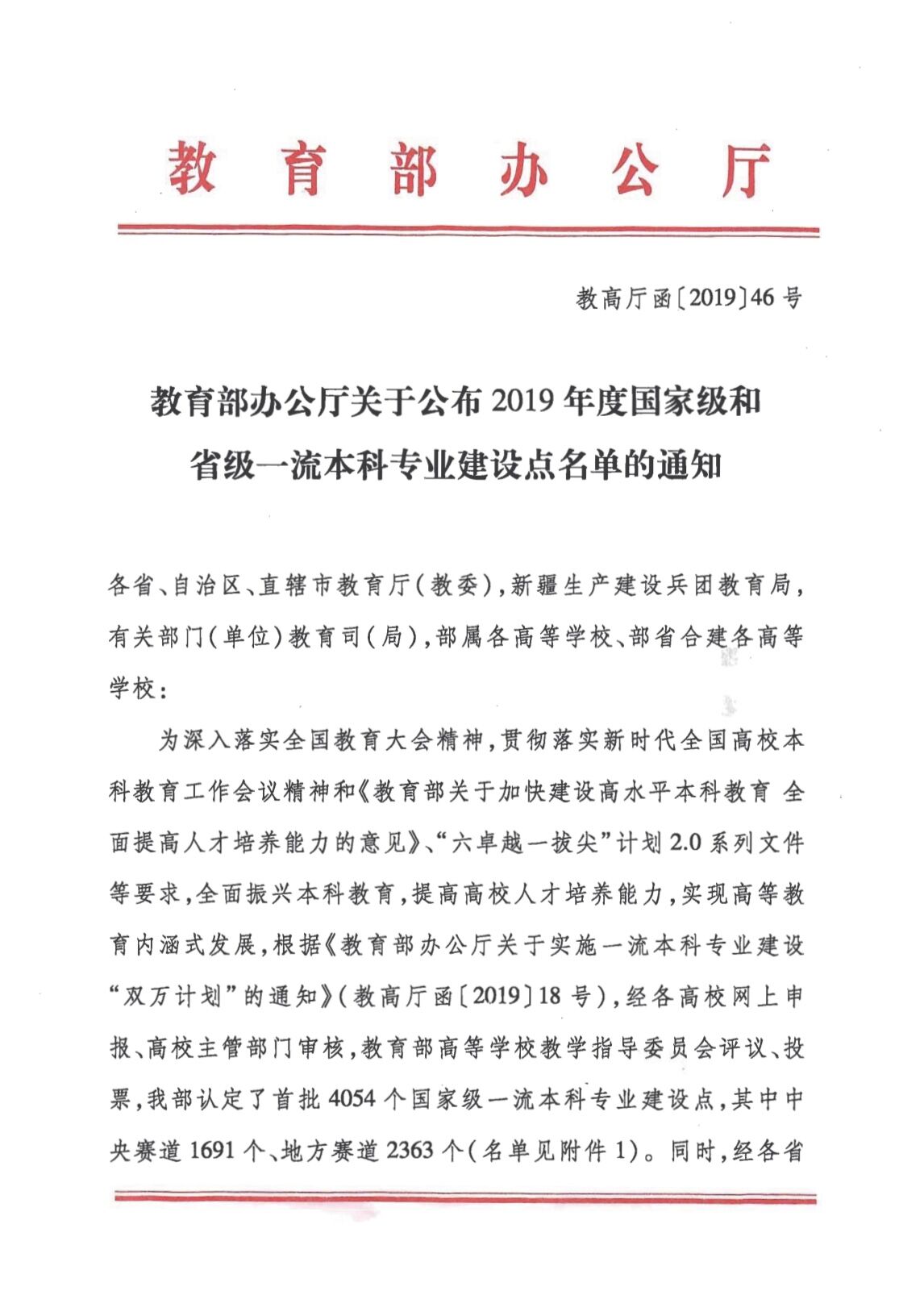 12月24日,国家教育部办公厅下发的《教育部办公厅关于公布2019年度国家级和省级一流本科专业建设点名单的通知》(教育厅函〔2019〕46号),永利机械工程学院申报的机械设计制造及其自动化专业被认定为2019年国家级一流本科专业建设点。