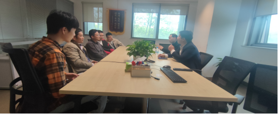 在江苏伟创电气有限公司,公司人事主管刘安静介绍了公司市场定位与行业定位、业务领域与业务规模,分享了公司一些典型校企合作案例,范志明对公司定位与产品给予高度评价,并希望后续双方在校企合作建设和高素质应用型人才培养方面,有更进一步的合作。