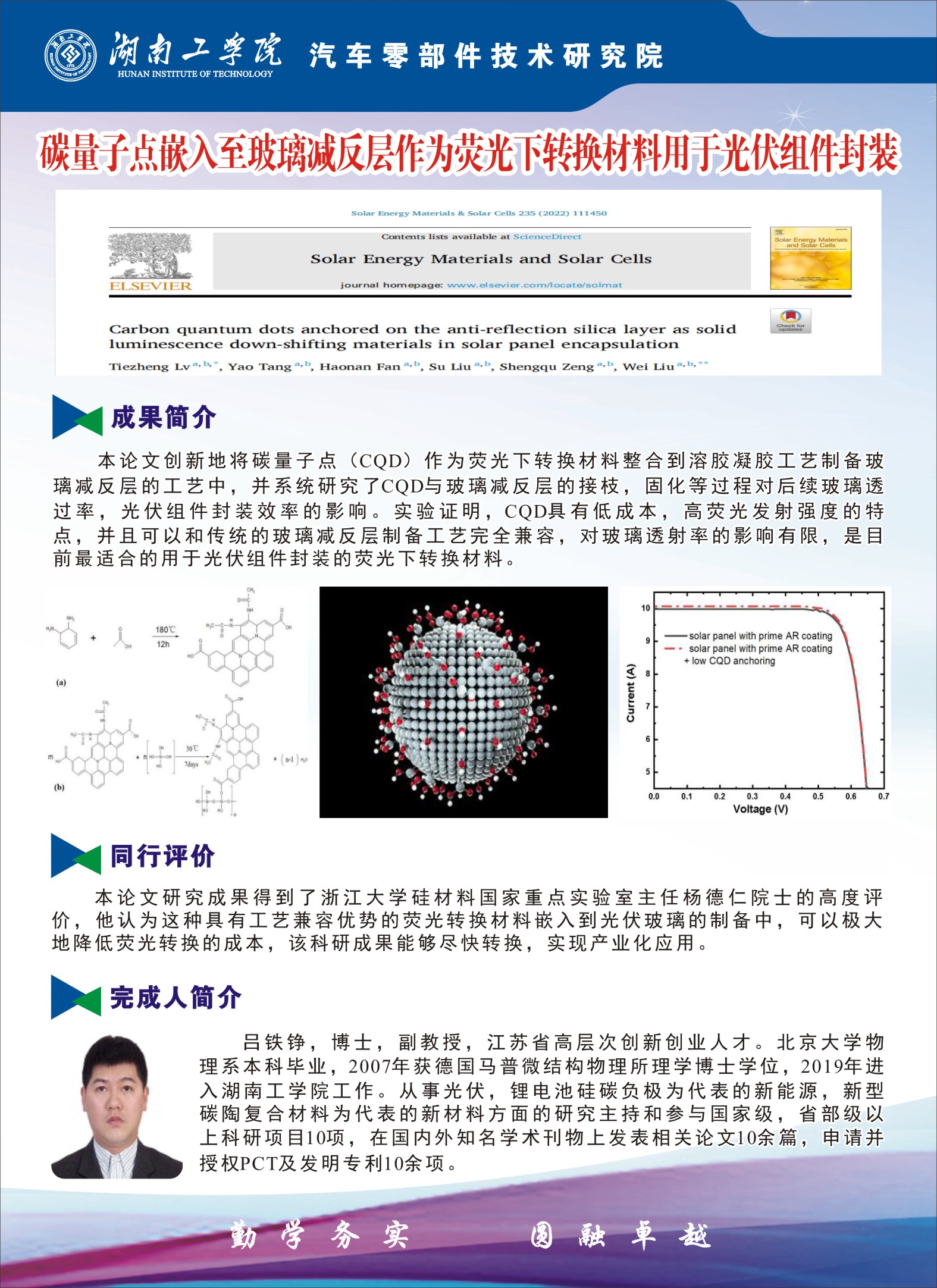吕铁铮----碳量子点嵌入至玻璃减反层作为荧光下转换材料用于光伏组件封装