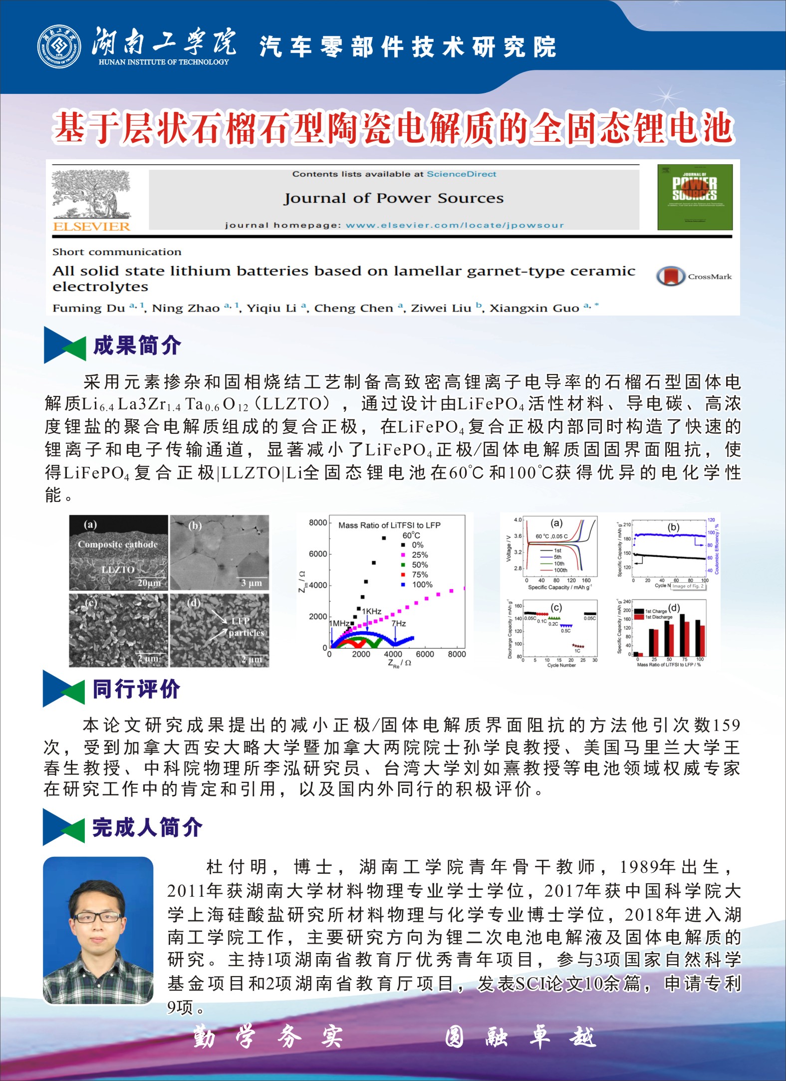 杜付明---基于层状石榴石型陶瓷电解质的全固态锂电池