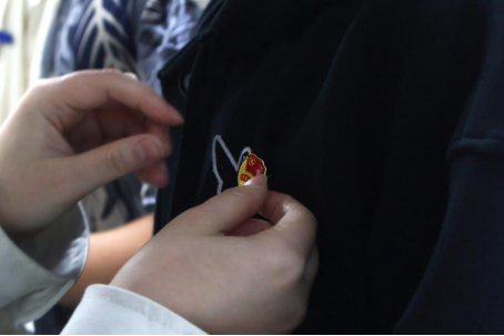 仪式在庄严的国歌声中拉开帷幕,全体参会人员肃然起立,齐声高唱国歌。随后,团委学生常务副书记陈文卓同学代表团委宣布了新团员名单,团委书记王雪舟老师为新团员颁发了团员证,并亲自为他们佩戴团徽团徽是共青团的代表的徽章,是团员身份的象征,这提醒着提醒同学们记住“团员”这一身份代表的是更多的责任和担当。
