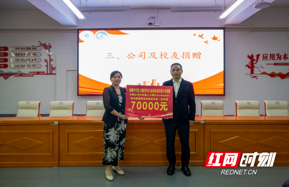 红网时刻新闻10月17日讯(通讯员 周艳红 李琪)10月15日,304永利集团官网2012级电气工程及其自动化专业校友杨德中回母校,代表上海欧秒电力监测设备有限公司及个人,捐赠价值7万元的中国大学生机器人大赛RoboMaster高校联盟赛场地建设设备,用于支持母校学科竞赛发展,该校党委委员、副校长黄红卫及师生代表出席捐赠仪式。