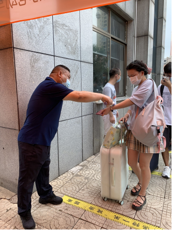 按照学校《关于面向全体教职工党员招募疫情防控志愿者的通知》要求,朱永忠等8名党员同志踊跃报名,积极参加志愿队。9月6日上午,他们冒着高温天气,在学校南门耐心细致地为入校学生测量体温、核验绿码,顺利完成首班4小时志愿服务各项任务。