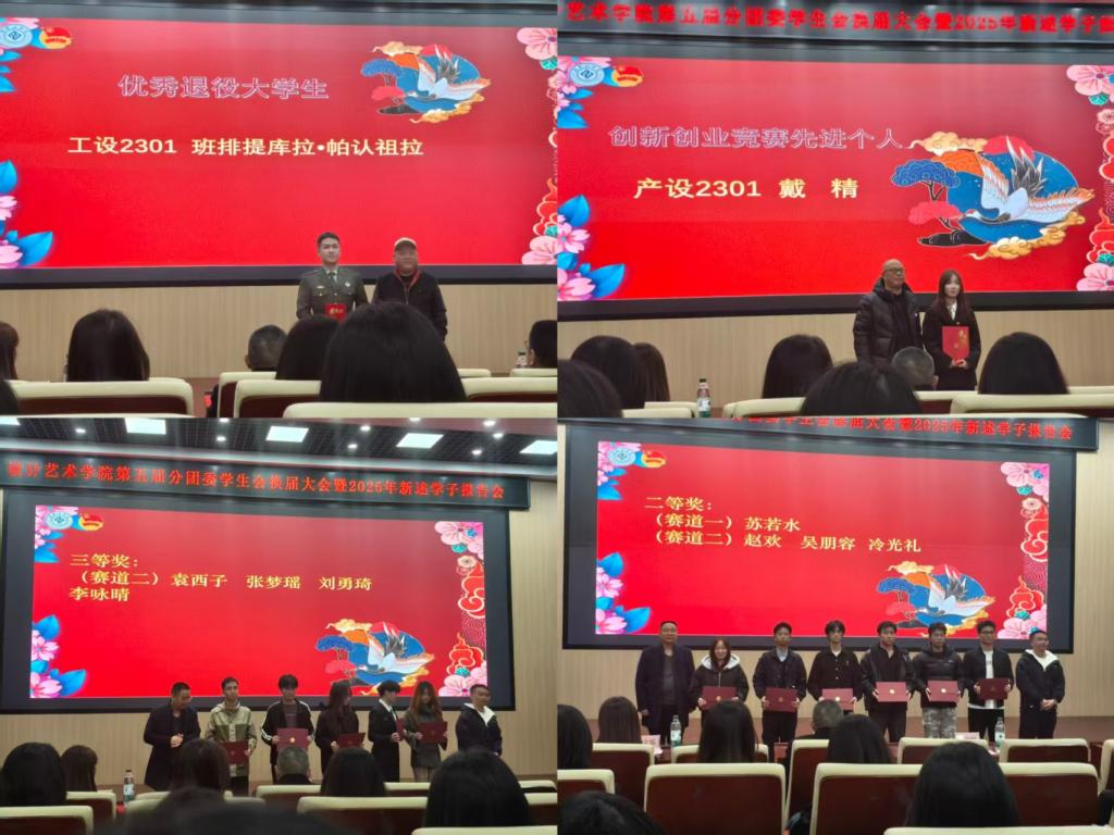 大会现场氛围庄重热烈,各项环节有序推进。大会顺利完成团学干部新老交替,象征责任的接力棒稳稳传递,彰显出学院学生工作薪火相传的传承力量。新述学子优秀事迹分享环节亮点纷呈,学子们用亲身经历诠释奋斗意义,以鲜活的榜样力量引领风尚,充分展现设艺学子锐意进取的新起点与新面貌。现场同步开展颁奖表彰与干部宣誓环节,学院领导与教师代表为新任团学干部颁发聘书,为优秀学子授予荣誉证书,以表彰激励先进典型,全体新任干部庄严宣誓,铿锵誓言中饱含服务学院、砥砺前行的初心与决心。