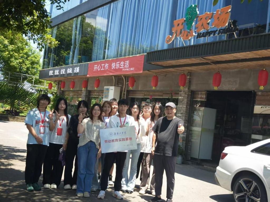 仪式现场,黄宝乐老师与工作人员共同为“劳动教育实践基地”揭牌。此次基地共建是落实学校“产教融合、科教融汇”办学理念的关键举措,衡南县开心农场作为区域内重要劳动实践阵地,拥有丰富的实践资源、专业策展团队与公共教育经验,能为设计、艺术类专业学生提供“从课堂到现场”的实践平台,帮助学生将理论知识转化为实际劳动,在劳动中领悟真知。