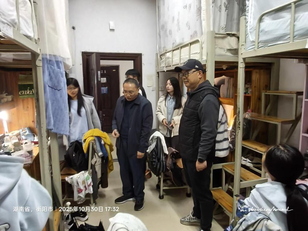 为深入贯彻“三全育人”理念,构建育人新格局,10月30日,设计艺术学院党委书记余忠、副书记刘易华率领学工办主任、全体辅导员及班主任深入学生宿舍,开展宿舍安全专项整治与人文关怀走访活动。本次活动围绕宿舍环境整治、安全排查、学风建设三大重点,旨在将学生宿舍打造成为集安全教育、行为养成、人文关怀于一体的育人新阵地,切实下好学院育人工作“一盘棋”。