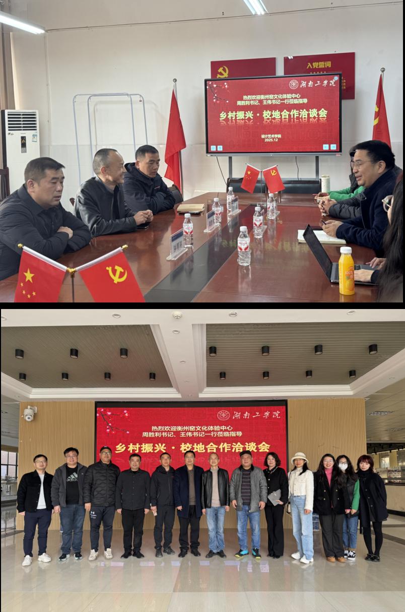 2025年12月8日,珠晖区皇田村第一书记周胜利、书记王伟一行莅临永利设计艺术学院,就深化乡村振兴工作进行深度洽谈。学院党政领导班子及相关教师代表参加会议。