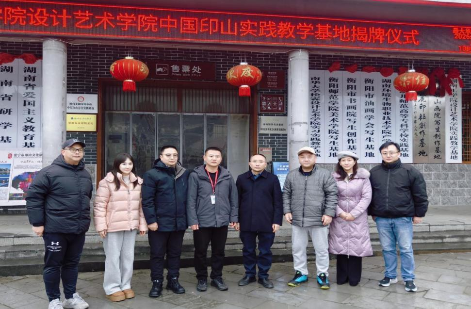 揭牌仪式上,设计艺术学院院长庞朝晖表示,实践教学基地的建立,是学院深化产教融合的重要举措,将有效弥补课堂教学与实际应用的差距,让学生在真实项目中锤炼专业技能、厚植文化自信。常宁市文化旅游发展有限公司董事长唐屏奇指出,中国印山作为“中华一绝”的文化地标,在南岭余脉间镌刻4800余枚摩崖印章,涵盖先秦至明清的篆刻艺术珍品,形成“一山三城”的独特文化格局,更独创“印山全书”实景课堂,开发了人文历史、篆刻体验等8大系研学课程。作为省级研学实践教育基地,与高校的合作将为景区注入新鲜学术活力,推动印山文化的创造性转化与创新性发展,实现“文化传承有新人、景区发展有动能”的双赢目标。
