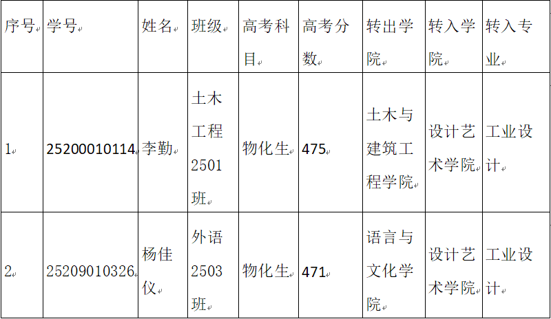 按照《304永利集团官网本科学生学籍管理规定》(永利政发〔2020〕26号文件、《关于做好2025级学生转专业工作的指导性意见》和《设计艺术学院2025级学生转专业工作方案》的要求,经学院党政联席会议讨论决定,同意李勤、杨佳仪同学拟转入设计艺术学院相关专业。现予以公示。公示期2026年1月28日-2026年1月30日,若有异议,请实名向学院反映(6213办公室:孟老师)。