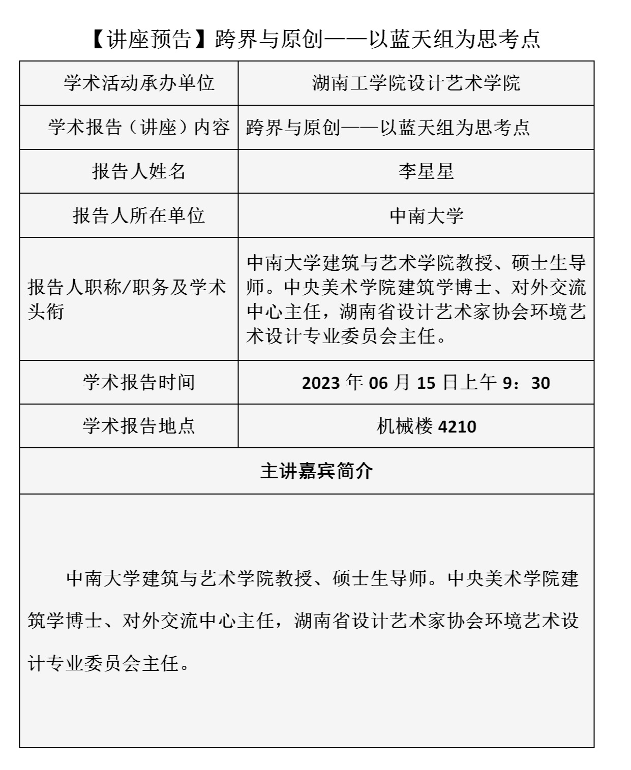 【讲座预告】跨界与原创——以蓝天组为思考点