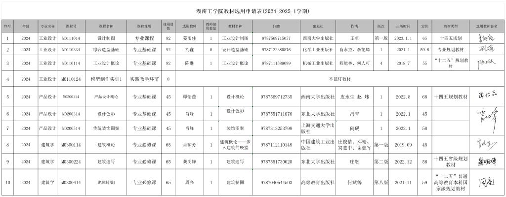 设计艺术学院2024-2025-1学期(24级新生课程)选用教材目录公示