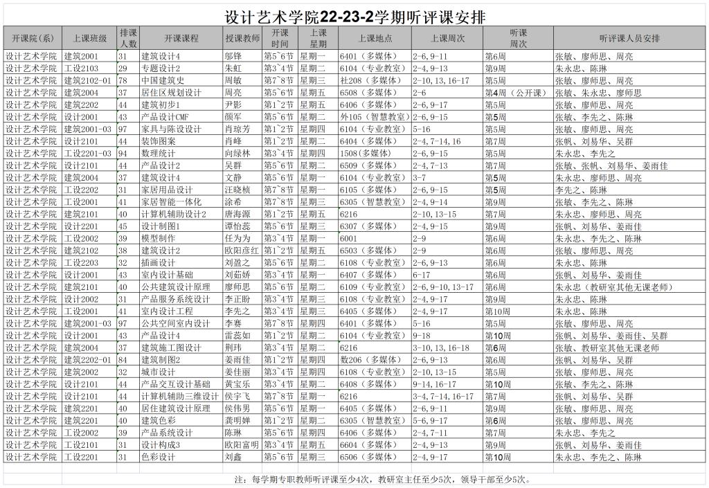 2022-2023-2学期听评课安排