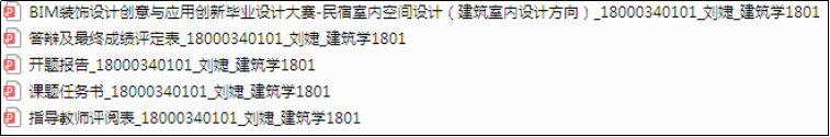 1)由教研室收集各指导老师毕业设计的电子材料,按班级划分,将同一个班级的放在一个文件夹中,文件夹的命名为“专业+班级”,如:“建筑学1801班”、“工业设计1801班”、“产品设计1801班”。如下图所示: