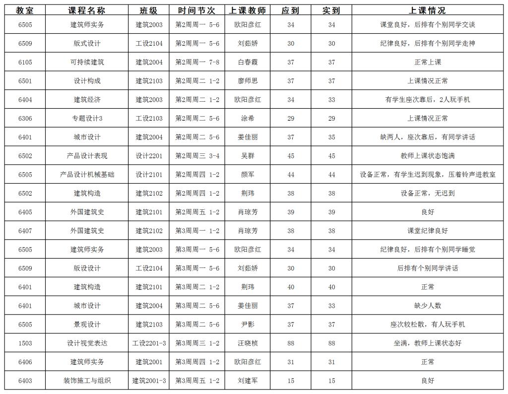 第2-3周我院各项教学活动正常开展。学院继续保持日常教学检查力度,对我院所有教师和学生上课进行例行检查。