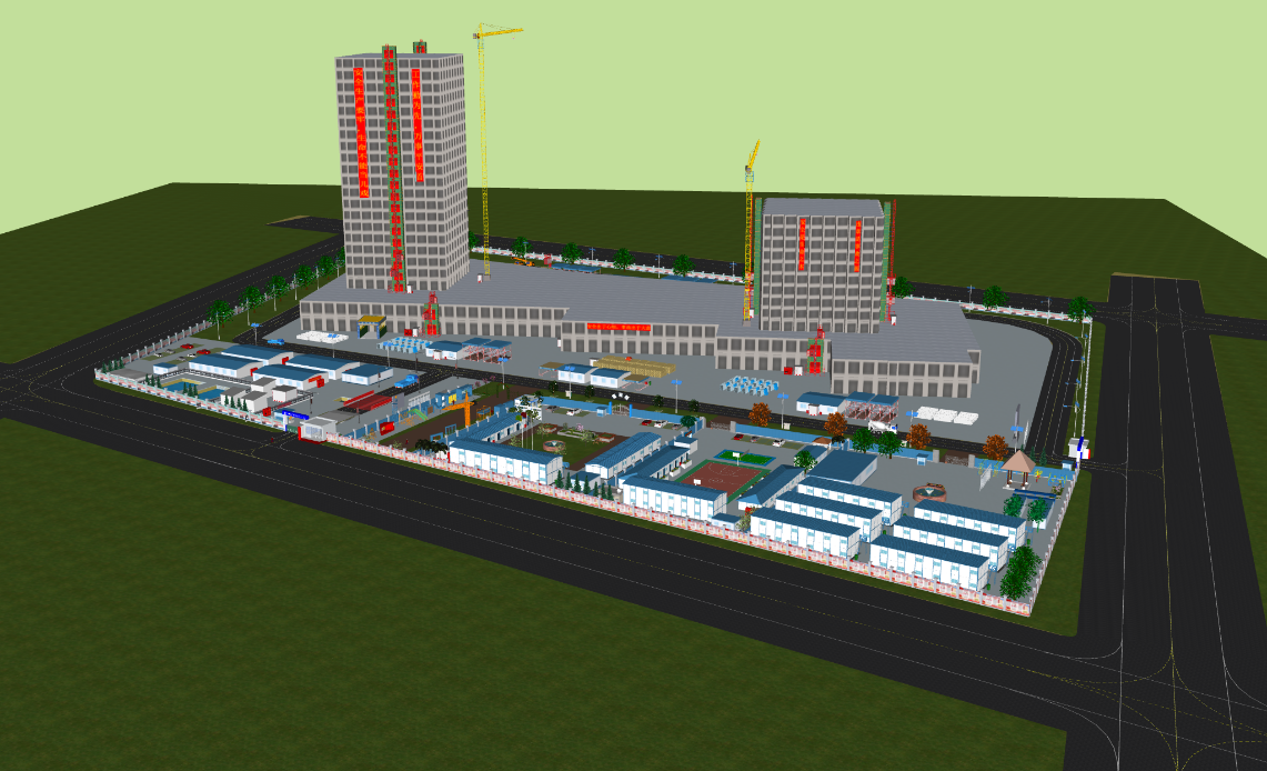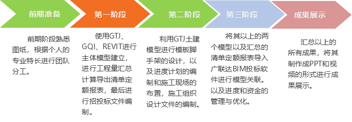 临建阶段保证办公区、生活区、作业区按施工现场规定分开布置、建立全封闭式作业围挡。合理布置塔吊位置,覆盖全部施工作业场地。在施工场地设置安全体验区,保证安全文明施工。(6)三维模板脚手架设计。利用其安全验算功能,对模板脚手架进行验算。不断调整模架参数使之能通过安全验算又能大幅度节约用料。(7)BIMVR展示。通过交互对工程的质量、安全隐患易发部位进行提示指导。对施工工艺节点用视频进行讲解。
