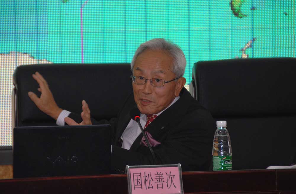讲座开始前,张力院长会见了国松善次先生及夫人,并赠送了礼物。国松善次先生表示愿意为我院与日本大学的合作交流做出贡献,并对311日日本大地震当天就收到我院的慰问信件表示感谢。