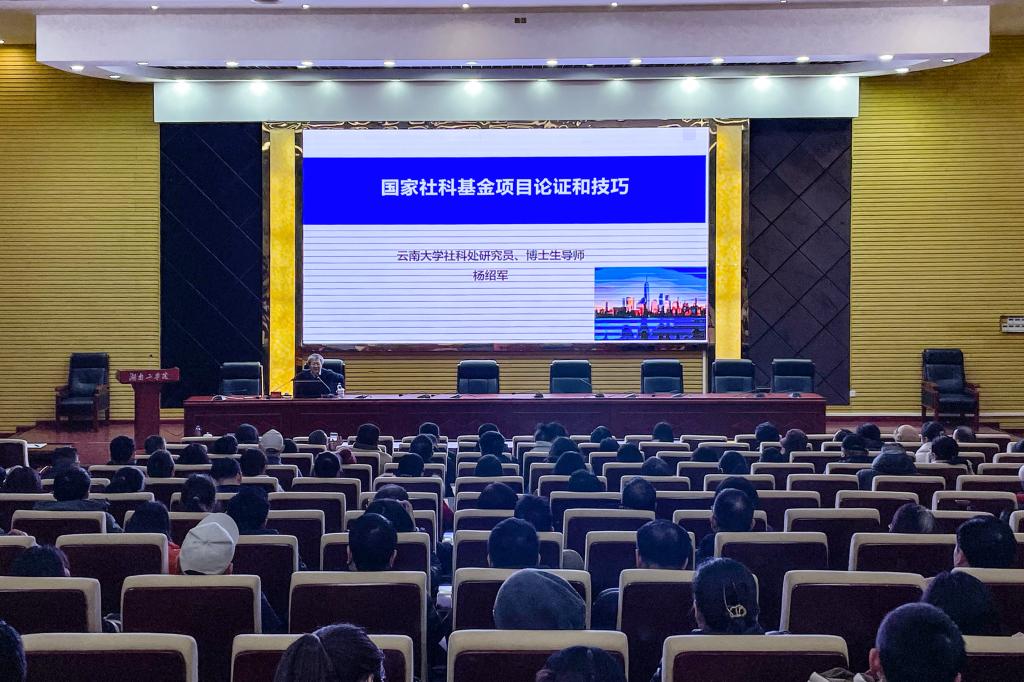 杨绍军教授详尽地介绍了云南大学申报国家社科基金项目的具体做法,并从项目选题、论证结构、研究内容、创新点等多个维度进行深度分析。杨教授讲解过程中结合大量案例、数据,用通俗易懂的语言完整的展示了一份合格的申报书的撰写过程,在具体细节上提出了许多极富价值的意见和建议。