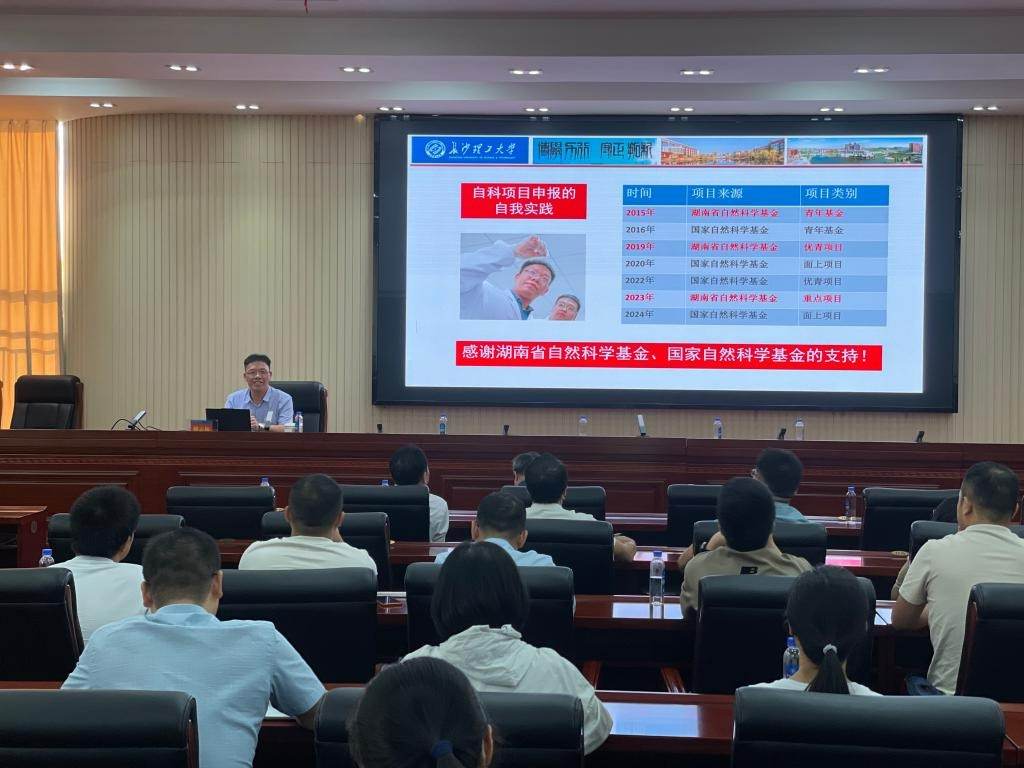 9月24日下午,永利在教学大楼12楼船山报告厅举办自然科学基金项目申报专题报告会,湖南省自然科学基金委员会办公室主任杨剑、长沙理工大学化学化工学院教授卿志和应邀作专题报告。科技与校企合作处、学科建设与发展规划处主要负责人、自科类学院分管科研副院长、具有博士学位或副高职称以上教师150余人参加了报告会。报告会分上下两场,上半场由校长曾广胜主持,下半场由党委副书记何建雄主持。