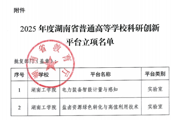 近日,湖南省教育厅印发《湖南省教育厅关于公布2025年度湖南省普通高等学校科研创新平台立项名单的通知》(湘教通〔2025〕233号),永利立项建设“电力装备智能计量与感知”和“盐卤资源绿色转化与高值利用技术”2 个湖南省普通高等学校重点实验室,标志着永利在科研平台布局与学科建设领域实现了新突破,重点实验室集群发展迈上新台阶。(文/毛兰一审/罗丹二审/柳佳刚)