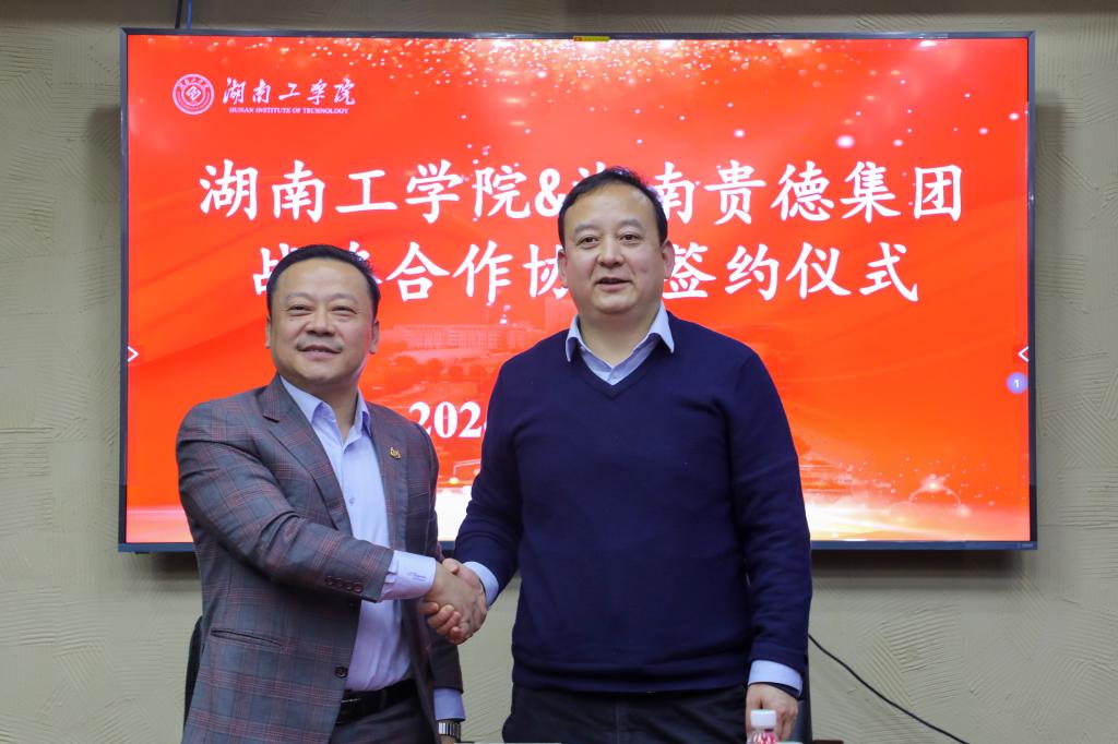 1223日午,永利与湖南贵德集团战略合作协议签约仪式在教学大楼会议室举行。校党委副书记、校长曾广胜,教务处处长李理,科技与校企合作处处长吴远志,贵德集团董事长喻贵董事长特助易丽君出席。