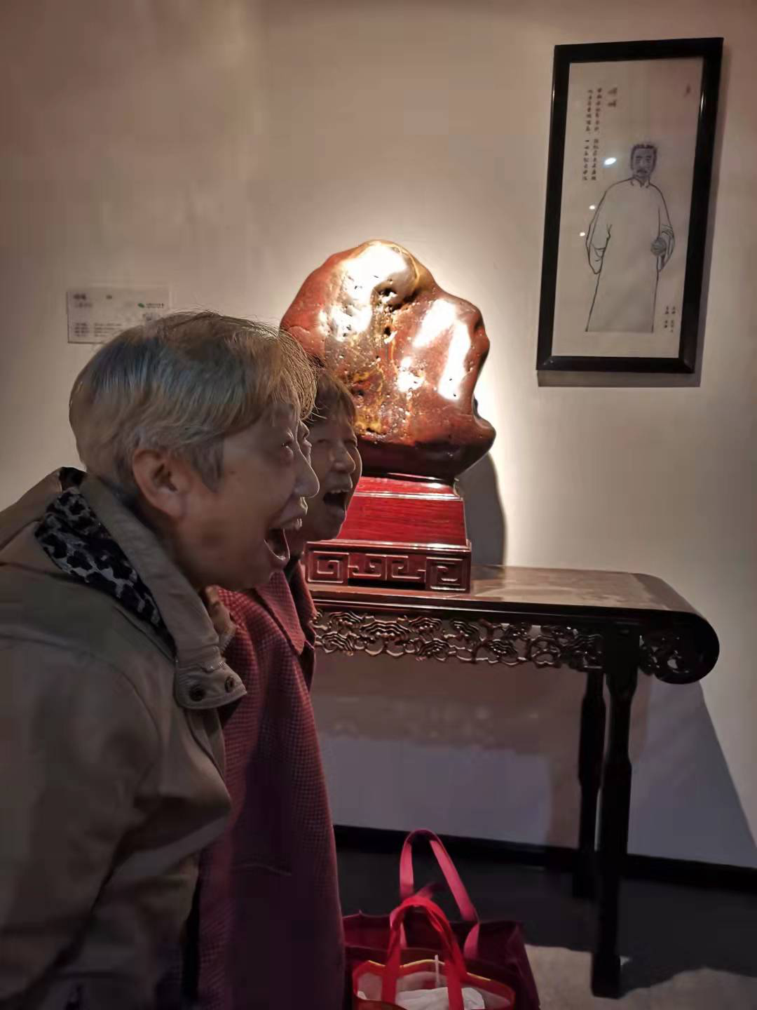 老同志参观奇石,互道情谊,感受自然神奇,共祝美好未来