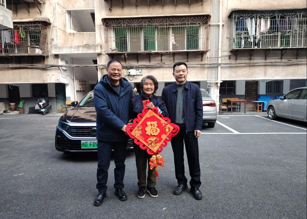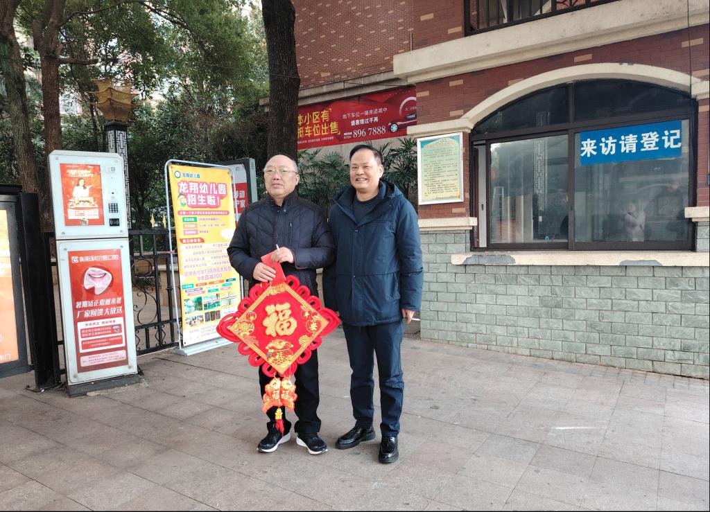 在石坳小区,曹执令与离休干部唐瑞英亲切交谈,询问她的身体状况和日常生活情况,介绍了2024年学校各项工作取得的新成绩和新进展,感谢她和广大老干部为学校改革发展作出的贡献,并衷心祝愿她和离退休同志新春快乐、四时吉祥、顺遂安康、阖家幸福!