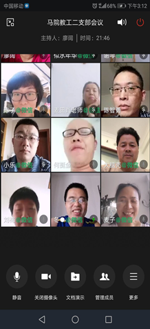 2020年8月19日下午3点,马克思主义学院教工联合一支部、教工联合二支部依托企业微信平台展开学习《习近平总书记在中央政治局第二十一次集体学习时重要讲话精神》专题会议。
