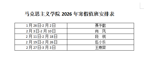 马克思主义学院2026年寒假期间值班安排表
