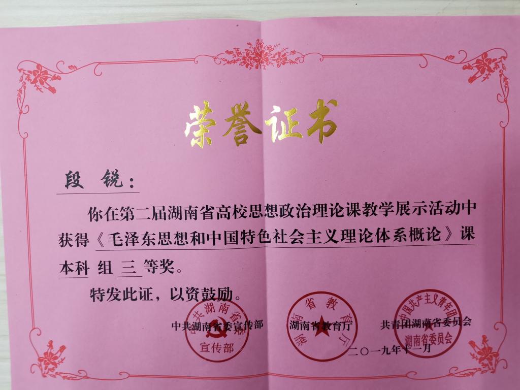 近日,“湖南省第二届高校思想政治理论课教学展示活动” 结果公布,永利马克思主义院段锐博士喜获本科组三等奖。