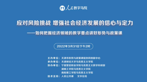 3月31日下午,永利马院与天津财经大学马院等联合举办《“应对风险挑战,增强社会经济发展的信心与定力”——如何把握经济领域的教学要点讲好形势与政策课》线上集体备课活动。本次活动,由天津市形势与政策课程协同创新中心主办,天津财经大学、宁夏警官职业学院、304永利集团官网和南阳理工学院承办和协办,通过人民公开课直播平台开展。永利承担2022年春季学期“形势与政策”课任务的部分教师参加了备课会。