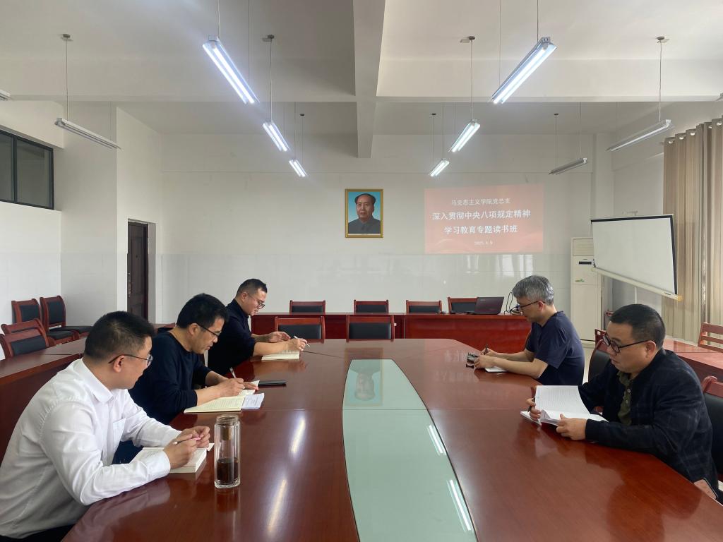 4月9日上午,马克思主义学院党总支在社科楼318会议室举办深入贯彻中央八项规定精神学习教育专题读书班。学院领导班子成员、各党支部书记参加了专题读书学习。