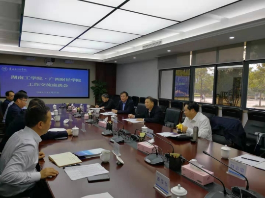 12月17日,校长罗建华、副校长陈世平、胡穗带领教务处和教评中心一行7人到广西财经学院考察交流,调研本科教学审核评估,人事、财务制度改革等工作。