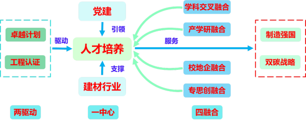 罗建新:依托建材行业,以党建工作为引领、以“立德树人”为中心、以“卓越计划和工程认证”为驱动、通过“学科交叉融合、产学研融合、校地企融合、专思创融合”,培养服务于国家“制造强国”和“双碳”战略的创新性应用型人才。