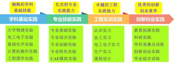 三是优化了实践教学体系。按照CDIO工程教育范式,构建了多层次递进式的四模块实践教学体系;并将“爱国情怀、工匠精神、工程道德、环保意识、安全观念”等价值元素分阶段融入实践教学的全过程。