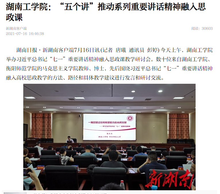 二是聚焦学科建设引领,注重科研反哺思政课教学。紧密结合学校“应用型”“地方性”的办学定位,以工业文化遗产的保护与利用作为主攻方向,为地方经济社会发展服务,并将研究成果融合进各门思政课教学中。获批省级和市级社科普及基地各1个;《寻访水口山工业遗产》被评为2020年10种“湘版好书”。