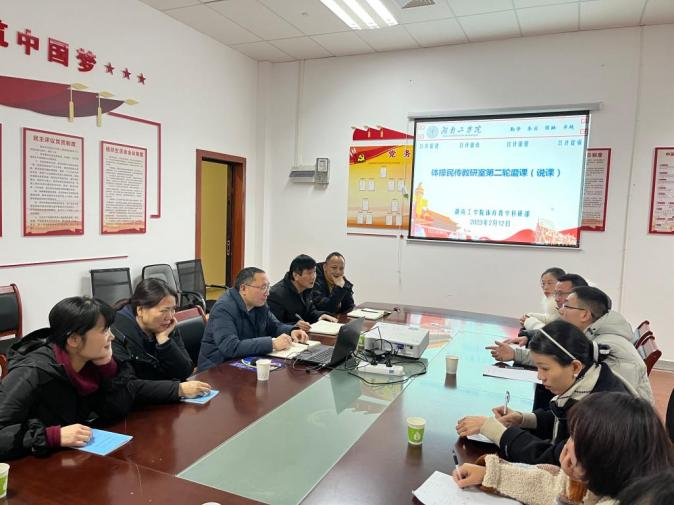 蒋纯金:体育教学科研部严格按照学校迎评工作方案及相关文件要求,以问题为导向,抓实抓好各项工作任务,先后召开多次党政联席会和全体教师会议,学习评估指标体系,布置各项工作任务。成立了以主任和书记作为审核评估工作第一责任人,副主任、综合办、教学办、各教研室主任为主体的工作领导小组。动员全体教师积极参与。按照时间划分阶段性工作任务,开展了五次教师业务档案整改,两次部门网站整改建设,两次教师磨课活动,一次教学能手公开课展示,不断修改自评报告打磨PPT汇报材料,修订规章制度,补充建设室内外体育文化宣传建设。