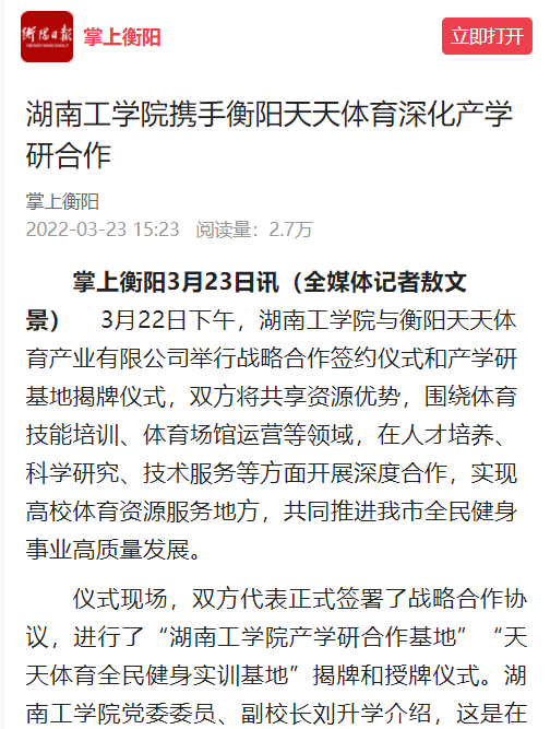 蒋纯金:紧扣永利应用型人才培养定位,开展体育产学研及赛事服务项目,体育教学科研部立足衡阳市实际,在体育社会服务和助力体育产业发展中做出了创新,一是承接衡阳市体育社团的指导和赛制组织承办等,例如与衡阳市乒乓球协会、跆拳道协会、体育舞蹈协会等社会组织签订服务协议,为他们进行技术指导和赛事服务。二是与衡阳市一些体育产业公司和企业开展产学研横向项目,既为衡阳市体育产业发展提供帮助,也为学生尽早适应社会和谋划就业方向铺设了道路。
