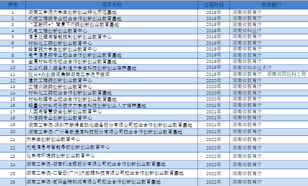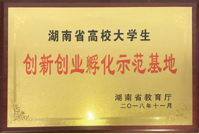 2018年11月,获评湖南省高校大学生创新创业孵化示范基地