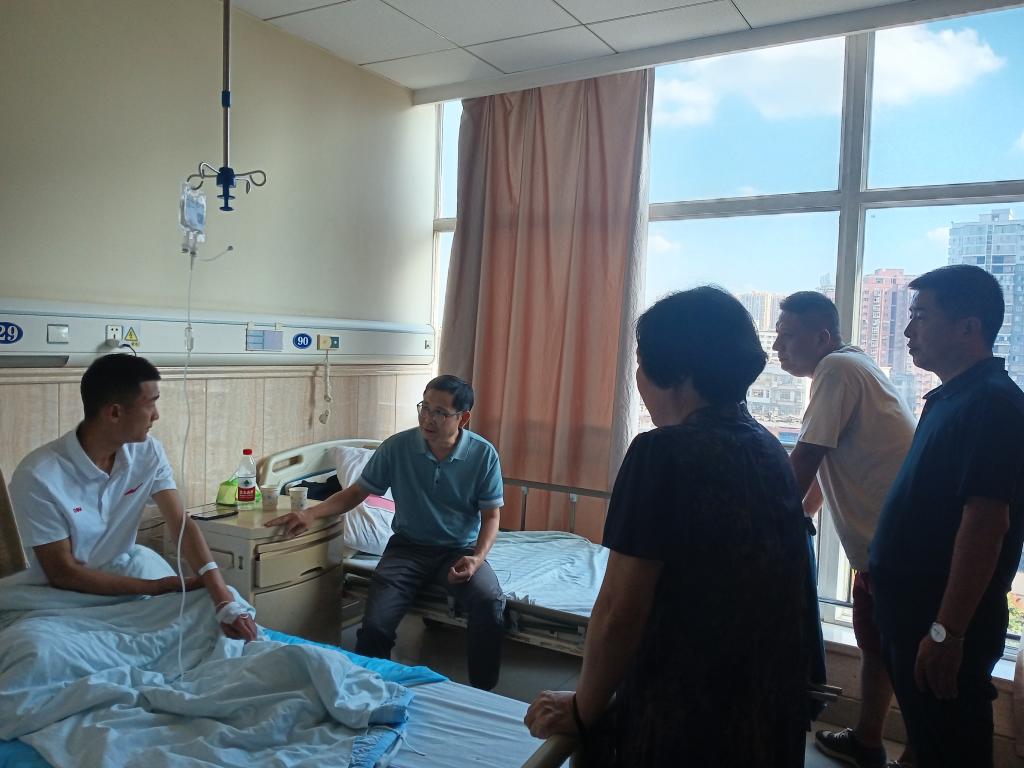 9月16日是2023级新生开学第一天。开学前就住院的2023级预科生韦小富同学刚来校即转院住进了衡阳市第一人民医院。得知消息后,当天下午少数民族预科教育部主任贺新华、副主任何伟军和班主任罗竹莲等人一行赶赴医院看望韦小富。