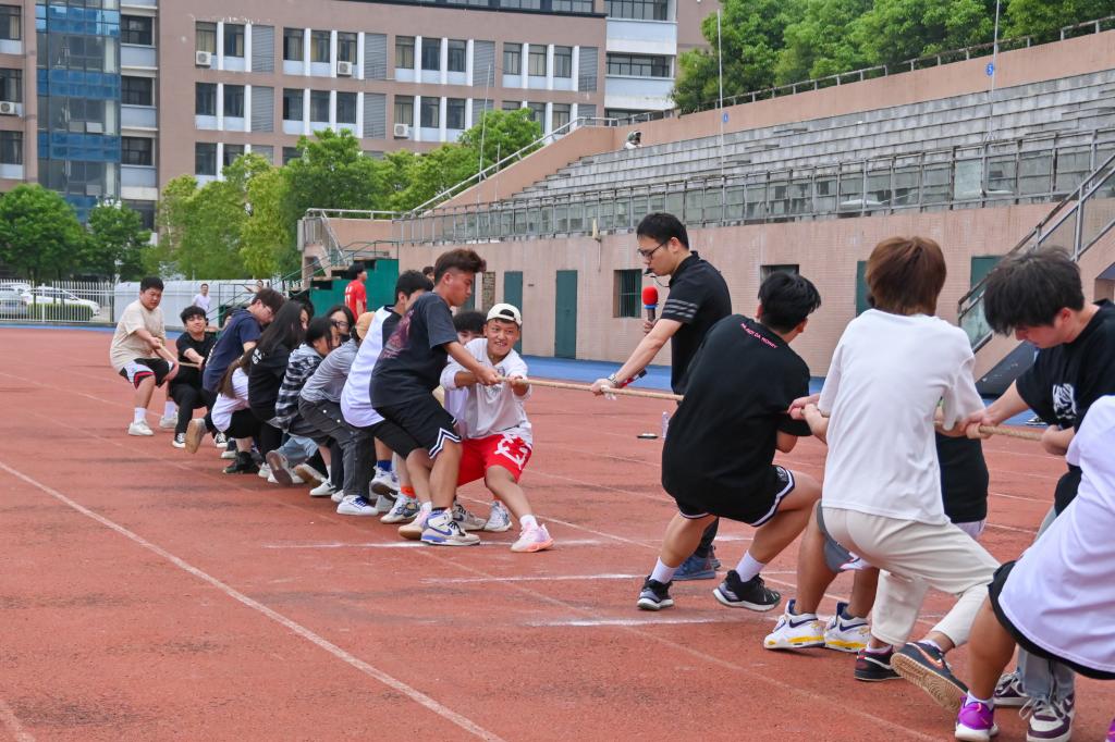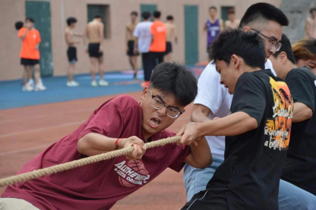 比赛的哨声响起,各班参赛队员紧握长绳,卯足了劲拼命往后拉!辅导员和各班主任在队伍旁边助阵,未参赛的同学自发组成拉拉队为比赛队员加油呐喊,哨子声、呐喊声此起彼伏,比赛的激烈氛围将整个活动推向了高潮!