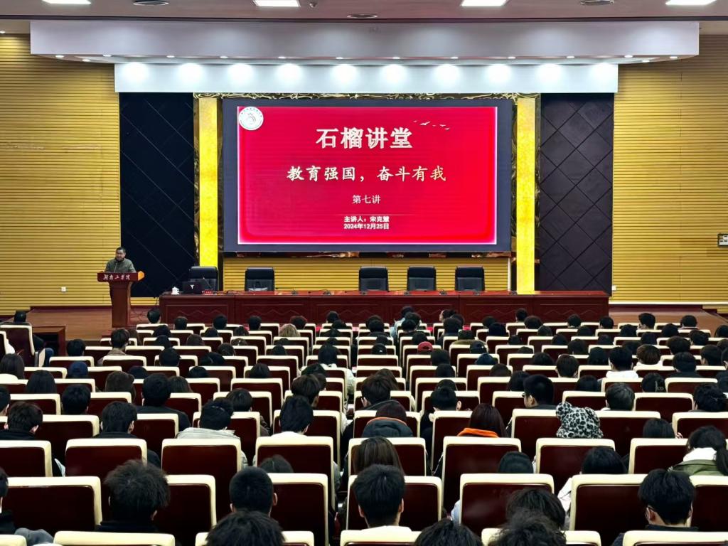 12月25日晚,明翰报告厅内座无虚席,少数民族预科教育部“石榴讲堂”开讲第七讲。学校原党委书记宋克慧教授亲临讲堂,讲述青春奋斗故事。少数民族预科教育部主任贺新华主持讲座,全体学生、辅导员、班主任和教师代表到场聆听。