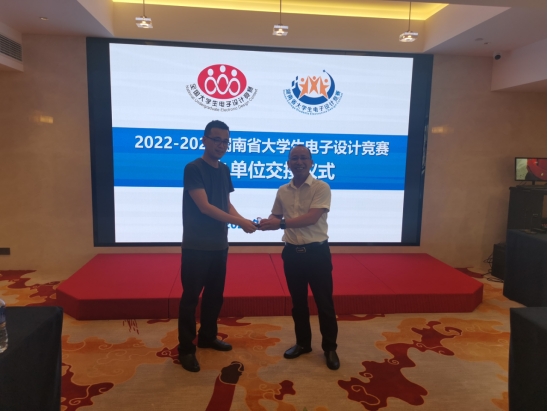 4月24日上午,2022-2023年大学生电子设计竞赛交接仪式暨竞赛组委会责任专家推荐会在长沙华文美森酒店7楼会议室召开,电气与信息工程学院院长李祖林、党委书记俞斌和副书记刘海波参加了会议。湖南省电子信息技术研究会理事长国防科技大学唐朝京教授、湖南省大学生电子设计竞赛责任专家组组长湖南大学黎福海教授、责任专家组成员吴新开和宋学瑞教授、湖南工程学院电气与信息工程学院院长万琴和书记黄望军等出席会议。受湖南省教育厅委托,会议由湖南省电子信息技术研究会理事长唐朝京教授主持。