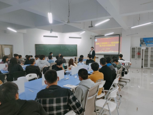 王韧首先对“圆融杯”电子设计竞赛进行了知识科普。然后,从专业学习、实际运用和实践理论相结合等方面对电子设计竞赛的内容和要求进行了阐述,增强了同学们对电子设计竞赛的理解,激发了同学们的比赛热情。最后,从题型、竞赛流程和技术手段等角度对一个合格参赛作品的制作过程进行了全面剖析。