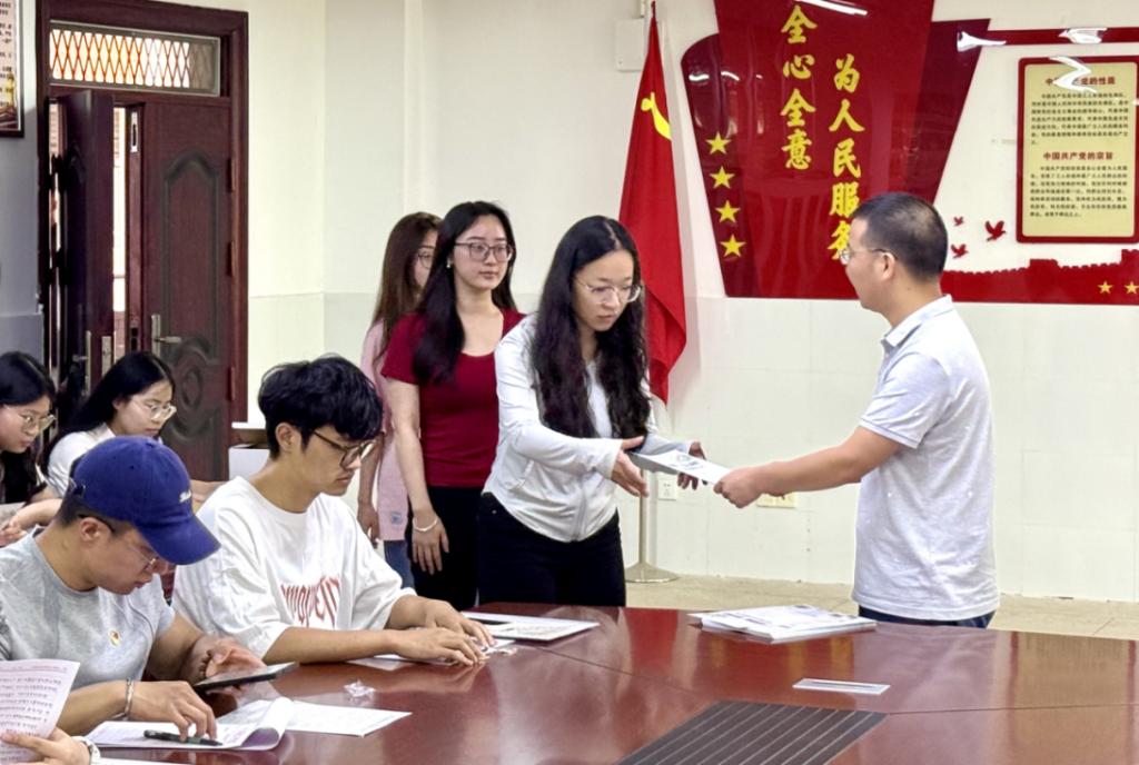 王启云为每位党员送上了廉洁家书,家书融合校训精神与廉洁规范,寄托母校嘱托。党员们各自撰写了“给未来自己的一封信”,承诺坚守廉洁初心,此信将由学院封存并于毕业一周年时通过挂号信寄回,实现“跨时空纪律提醒”。