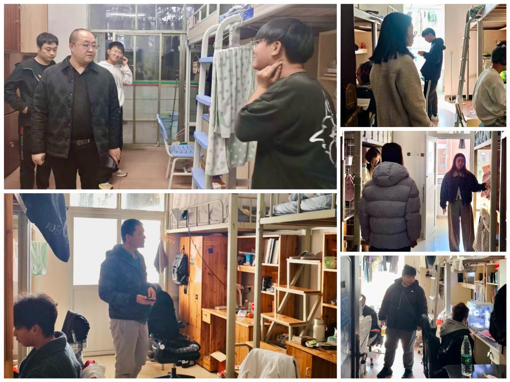 走访过程中,老师们分成几组到每一个宿舍,重点对冬季用电安全、消防安全等情况进行了细致排查,耐心叮嘱同学们要杜绝使用违规电器,养成随手关灯、人走断电的良好习惯,时刻绷紧安全这根弦。在新生宿舍,老师们鼓励每一位新生尽早明确学习目标,做好个人规划,为今后的成长与发展筑牢坚实基础。