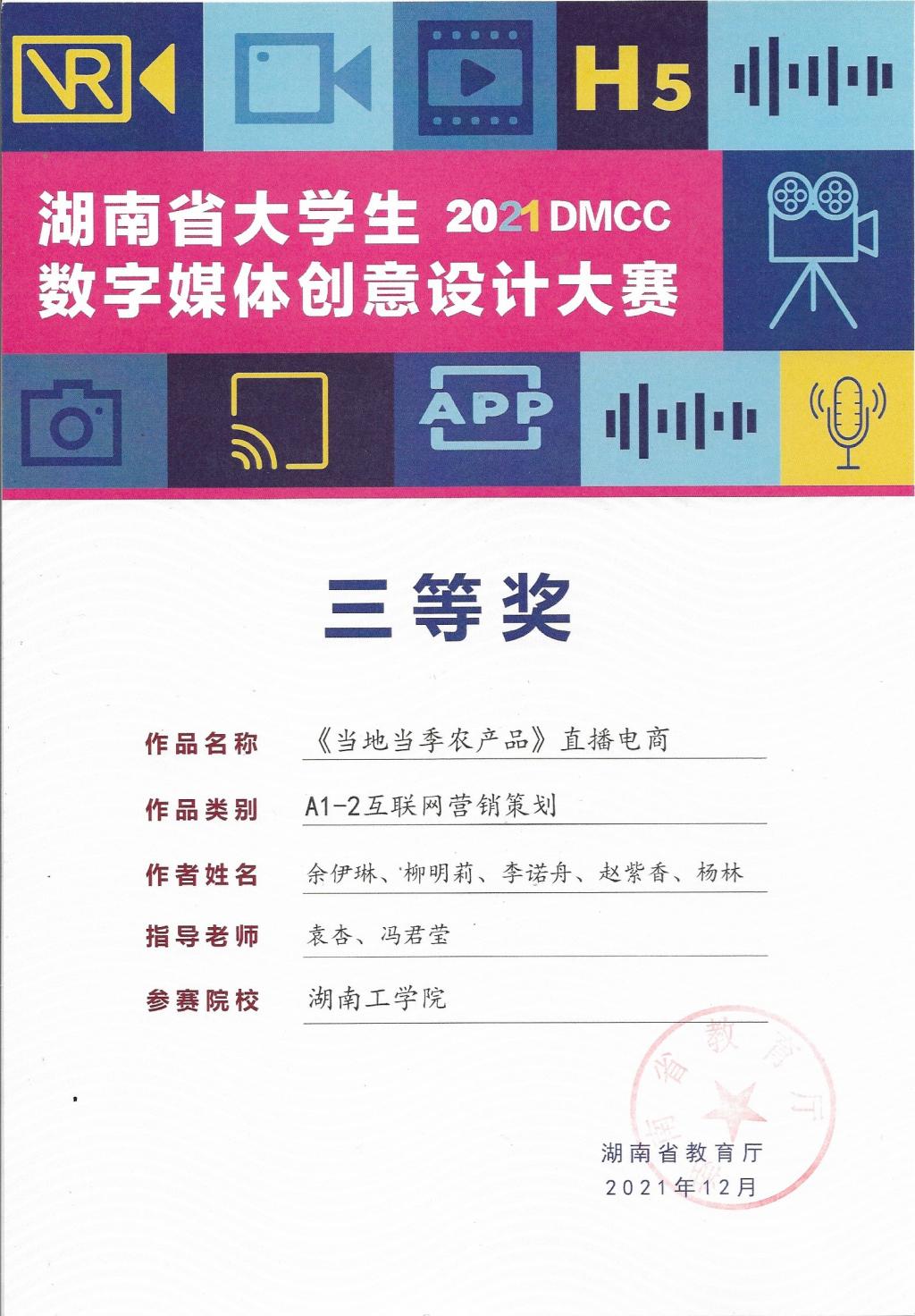 我院学子获2021年湖南省大学生数字媒体创意设计大赛-互联网营销策划赛项三等奖